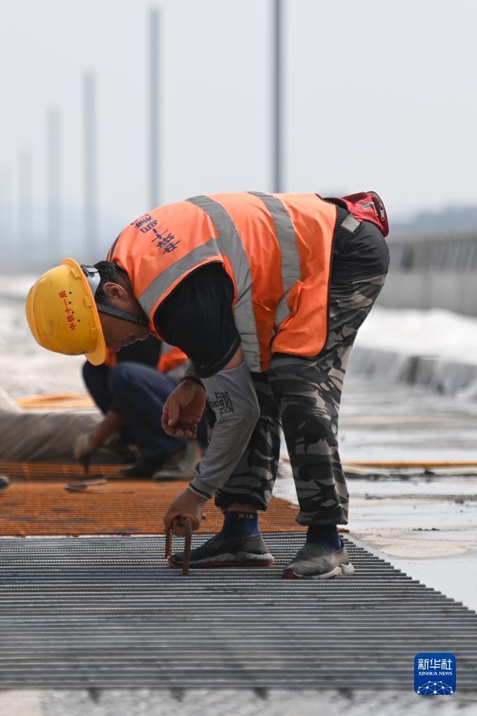 5月30日,中鐵十一局的建設者在杭衢鐵路無砟軌道施工現場作業。
