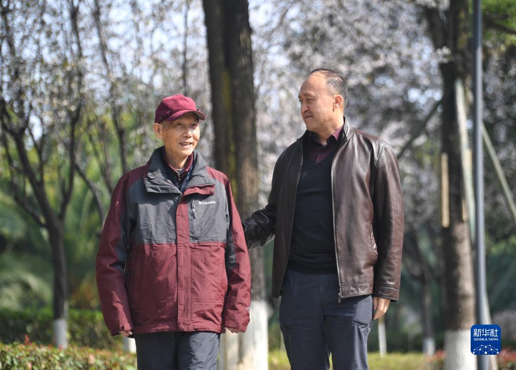 3月3日,在中國核動力研究設計院內,魏昌武(右)、劉艷陽師徒二人在散步交流。