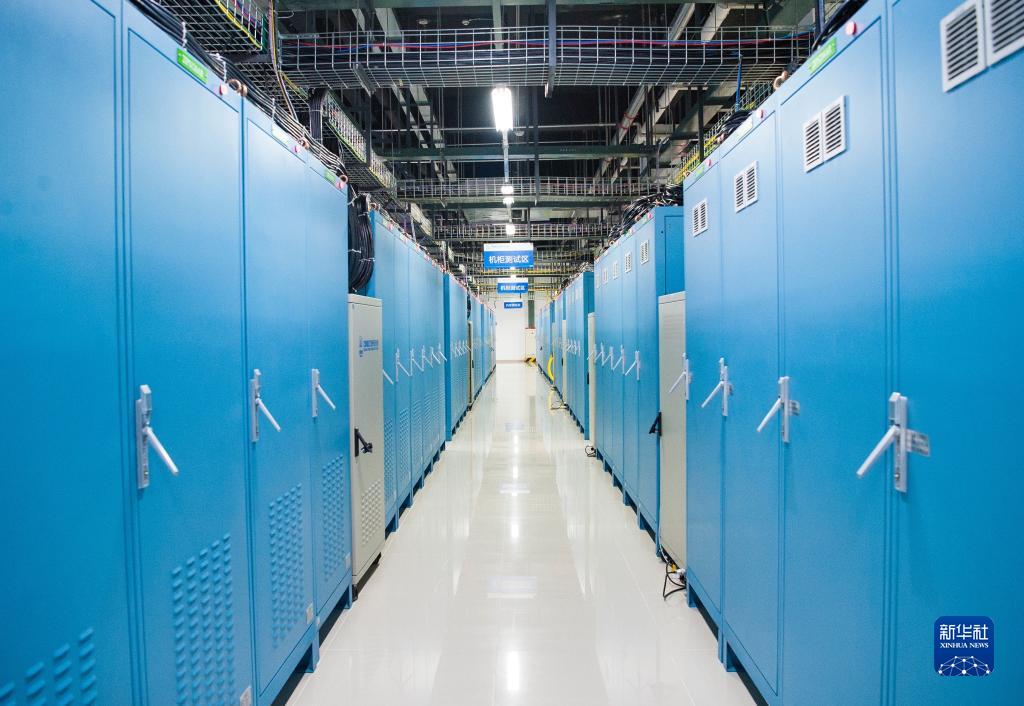 這是5月26日拍攝的龍鱗系統生產基地內擺放的機柜。