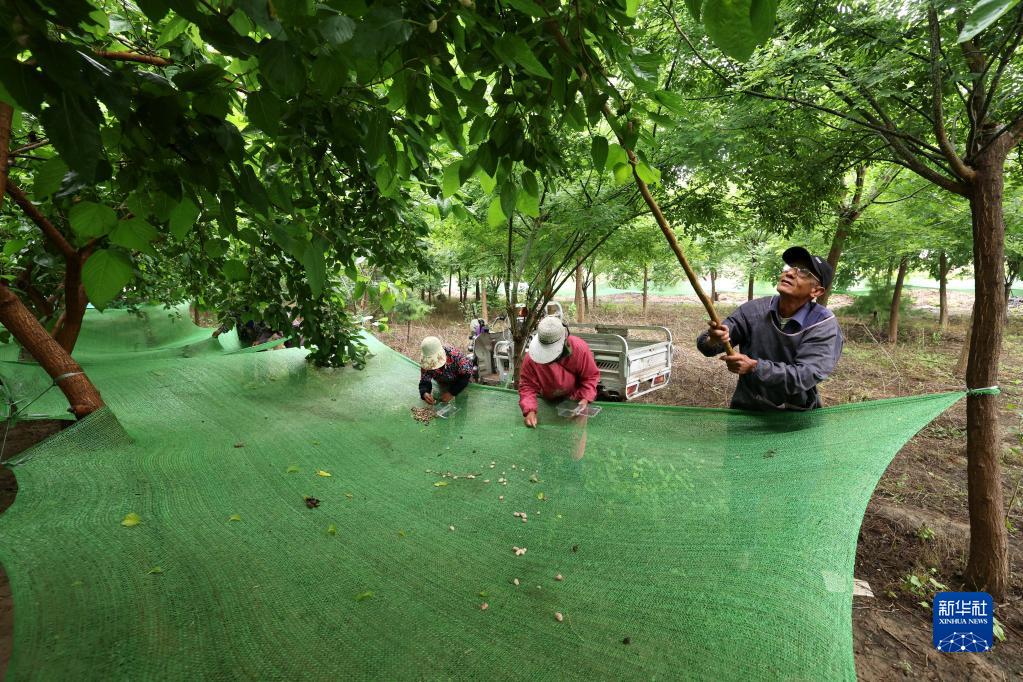 5月30日,在石家莊市欒城區(qū)后牛村桑葚采摘園,工作人員采收桑葚。