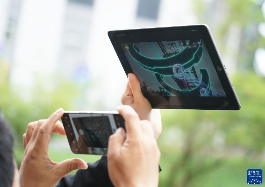 5月30日,工作人員在科幻產(chǎn)業(yè)新技術(shù)新產(chǎn)品展現(xiàn)場進(jìn)行AR(增強(qiáng)現(xiàn)實(shí))效果展示。