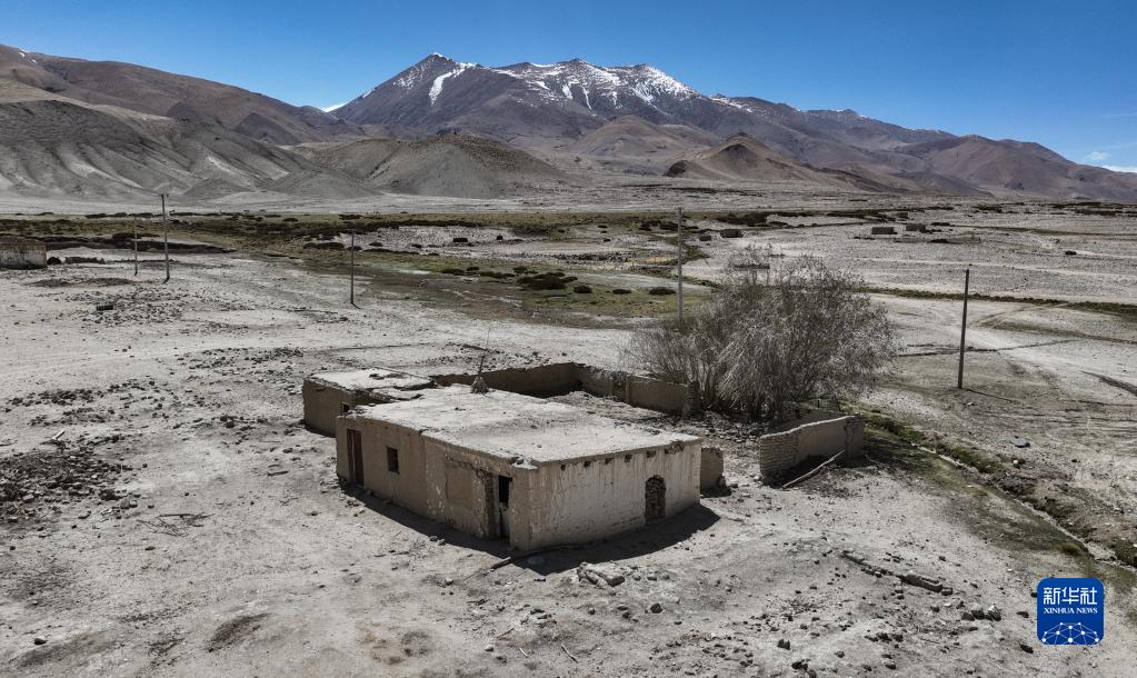 這是5月28日拍攝的典角村“二代房”(無人機(jī)照片)。跟“一代房”相比,“二代房”顯得更加整齊,房子后面還有一個(gè)用土墻圍起來的院子,可以把牲畜圈在里面。屋頂是用木棍先鋪一層,然后再覆蓋上泥土。新華社記者 晉美多吉 攝