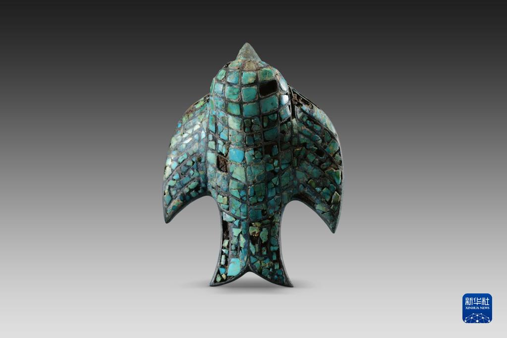 這是陜西清澗寨溝遺址發(fā)現(xiàn)的綠松石銅鳥飾。