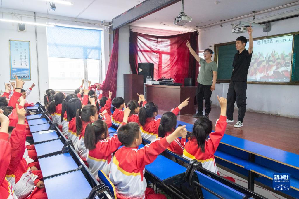 5月30日,在安達(dá)市任民鎮(zhèn)中心小學(xué),音樂班的孩子在學(xué)習(xí)演唱技巧。