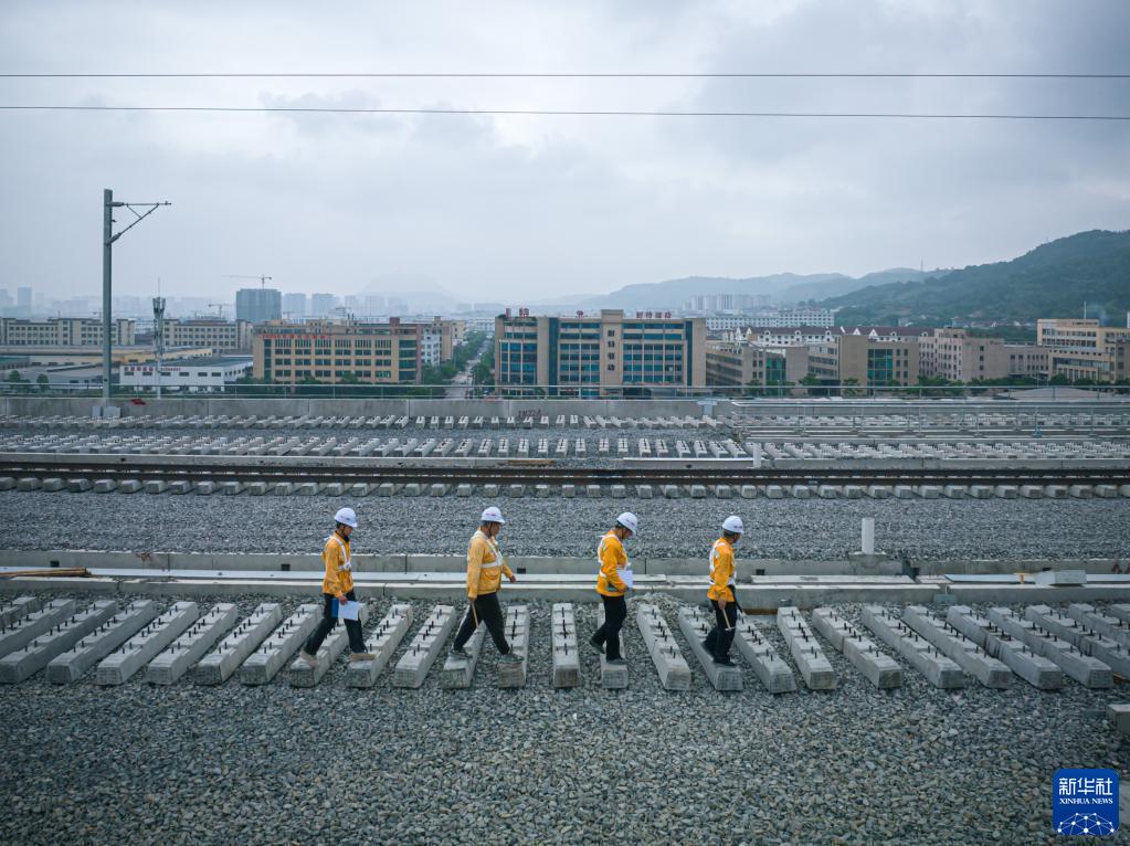 金甬鐵路位于浙江省中東部地區,工程范圍為滬昆鐵路義烏站至甬臺溫鐵路云龍站,新建正線全長約188.3公里。目前,金甬鐵路正在施工建設中。為確保金甬鐵路安全順利通車運行,由寧波工務段鐵路工人組成的金甬鐵路提前介入組對金甬鐵路已建成的橋梁、隧道等進行檢測,排除安全隱患。
