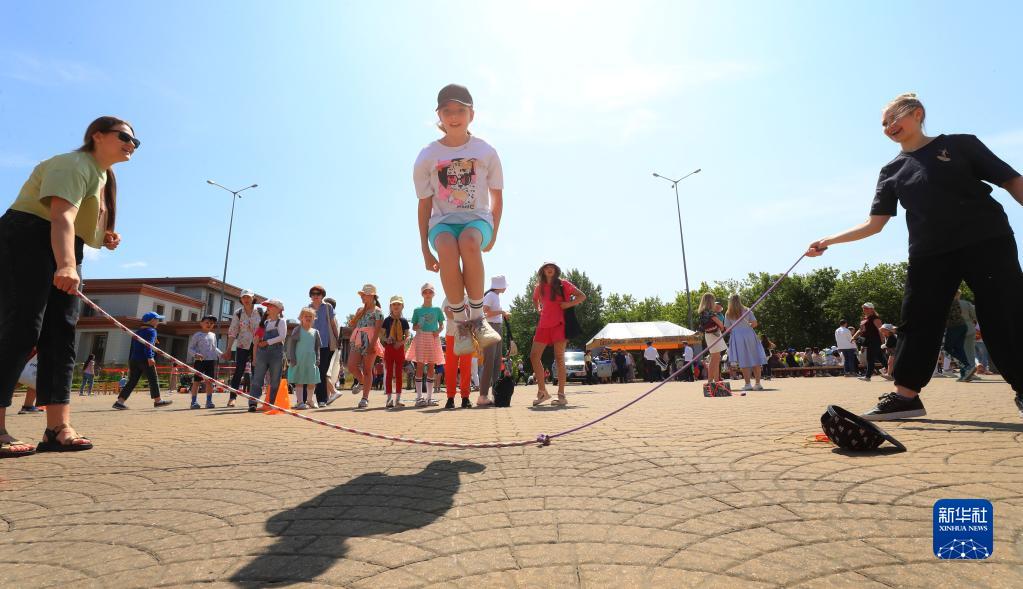 6月1日,孩子們在白俄羅斯首都明斯克做游戲,慶祝“六一”國際兒童節。