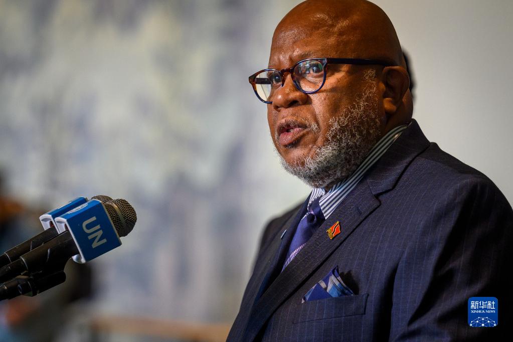6月1日,在位于紐約的聯合國總部,特立尼達和多巴哥常駐聯合國代表丹尼斯·弗朗西斯當選第78屆聯合國大會主席后向記者發表談話。