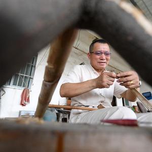 陸云崗家住廣西賓陽縣賓州鎮陸村,是廣西非物質文化遺產賓陽油紙傘制作技藝傳承人。油紙傘制作技藝在賓陽縣傳承已超過300年,陸云崗家幾代都是制傘手藝人。從砍竹子到成品,一把油紙傘前后要經過120多道工序,從頭到尾要3天才能完成。陸云崗說,就是在這樣精細的制作打磨中,每一件產品擁有了手藝人心手相傳、代代不絕的溫度。