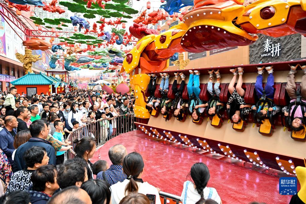 游人在四平市仁興里沉浸式文旅街區內體驗游樂設施(6月1日攝)。