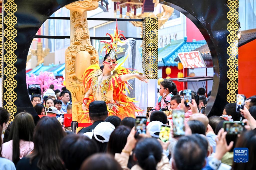 6月1日,表演者在四平市仁興里沉浸式文旅街區內進行舞蹈表演。