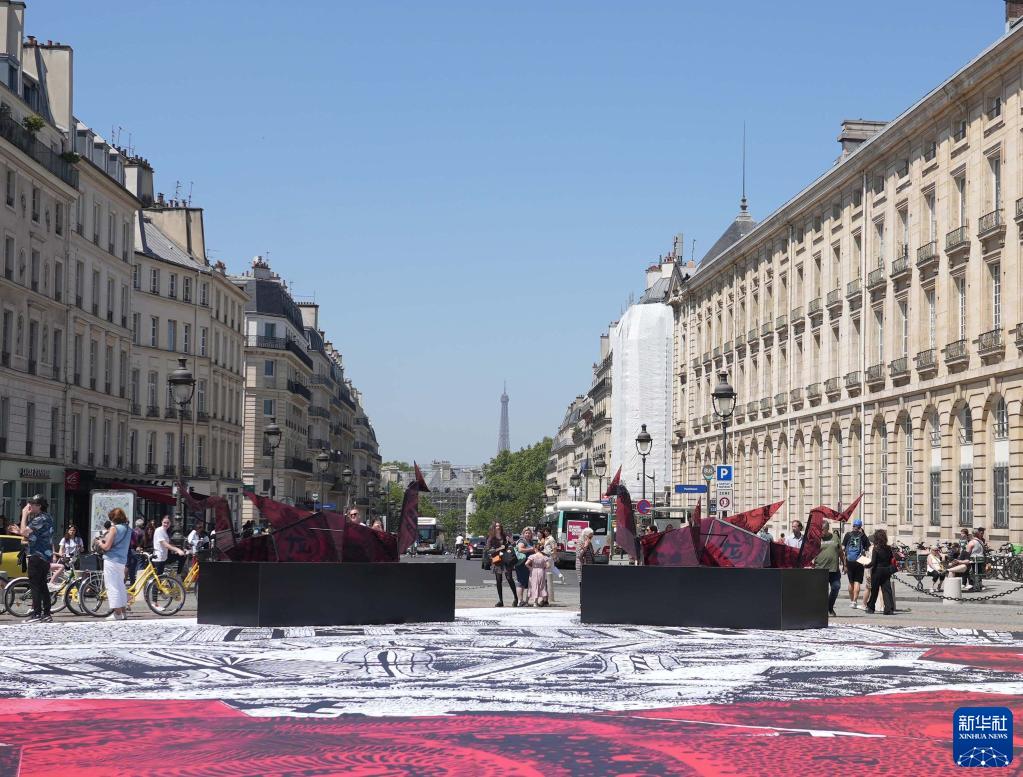 這對“中國龍”折紙造型的雕塑以及巨型畫作,均由法國藝術家格溫德琳·菲納·德維萊納創作完成。她表示龍在中國文化里具有智慧、力量和福氣的寓意。她希望帶上她設計的彩龍,從巴黎的先賢祠“起飛”,作為中法兩國和平和友誼的象征,最終于2024年“飛”到中國。