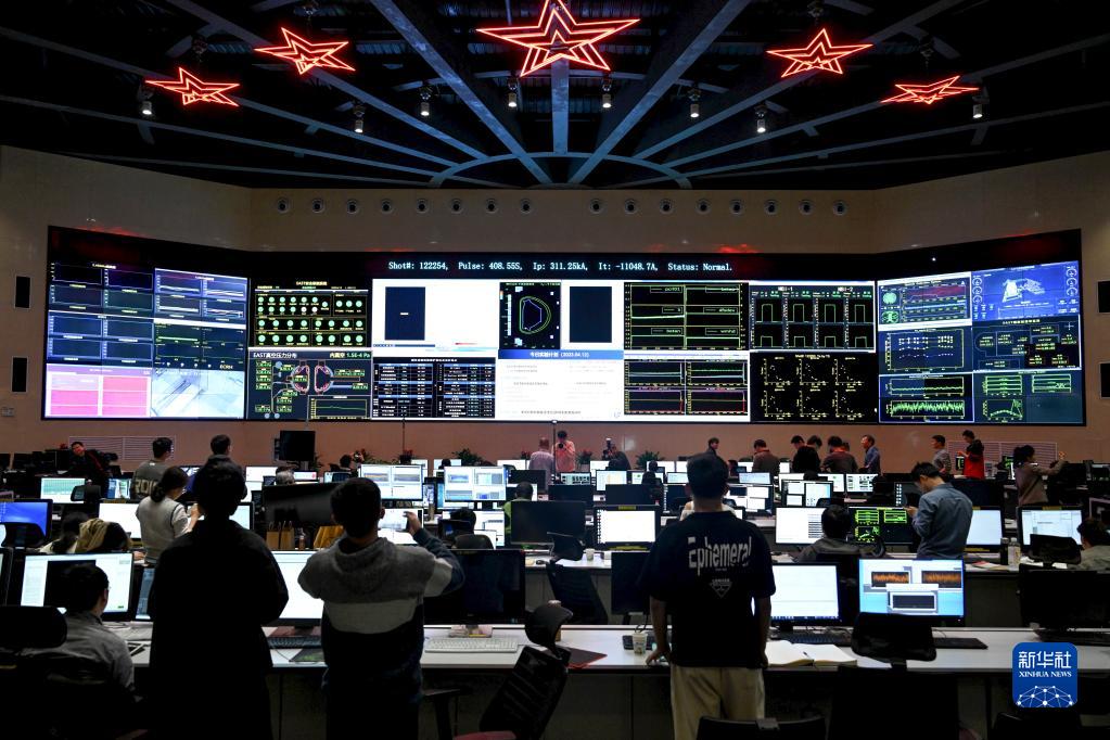這是實驗成功后的全超導(dǎo)托卡馬克核聚變實驗裝置(EAST)控制大廳(2023年4月12日攝)。4月12日21時,中國有“人造太陽”之稱的全超導(dǎo)托卡馬克核聚變實驗裝置(EAST)創(chuàng)造新的世界紀(jì)錄,成功實現(xiàn)穩(wěn)態(tài)高約束模式等離子體運行403秒。