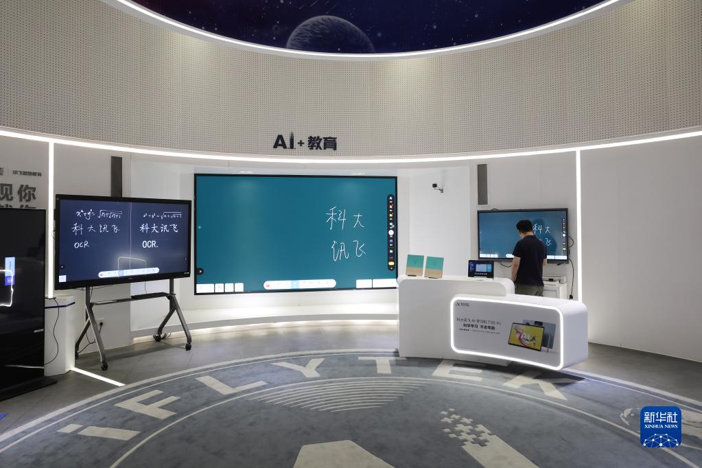 5月30日,在合肥科大訊飛人工智能體驗館,參觀者體驗應用于教育行業的人工智能產品。