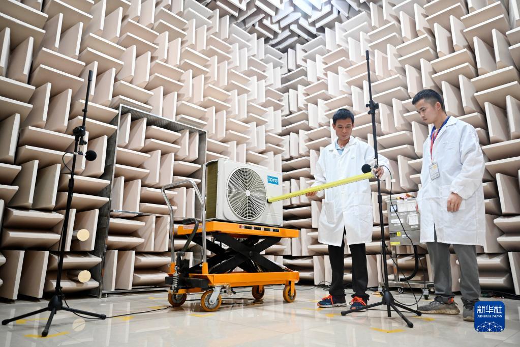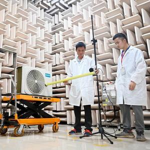 6月2日,技術人員在柳江區一家空調企業的實驗室里對即將上市的產品開展噪音測試。