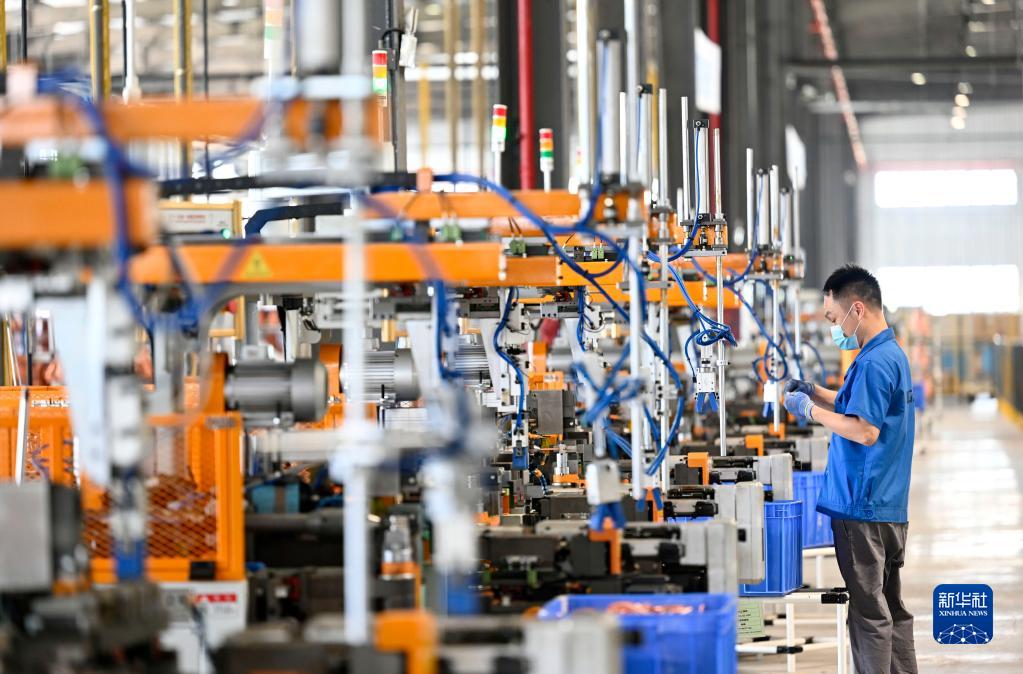 6月2日,工人在柳江區一家空調企業的生產車間內忙碌。