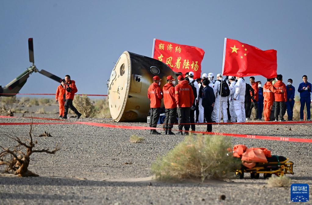 6月4日,神舟十五號載人飛船返回艙在東風著陸場成功著陸。新華社記者 連振 攝