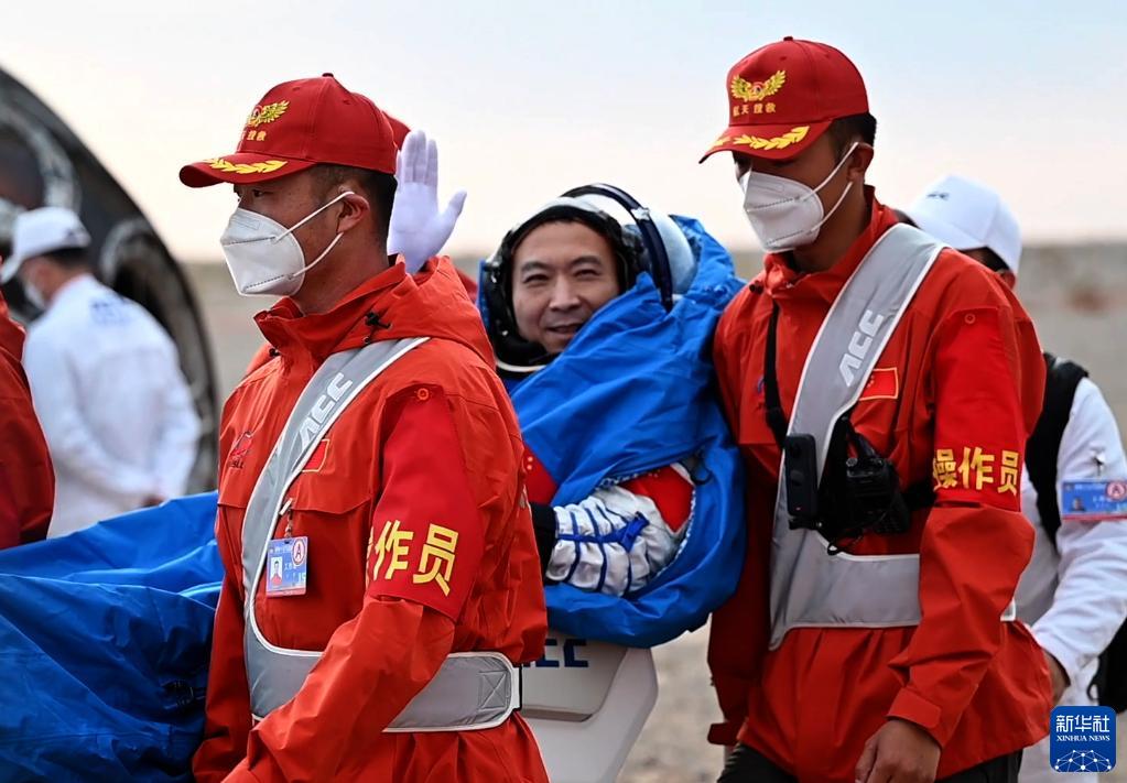 6月4日,神舟十五號(hào)載人飛船返回艙在東風(fēng)著陸場(chǎng)成功著陸,神舟十五號(hào)載人飛行任務(wù)取得圓滿成功。這是航天員費(fèi)俊龍安全順利出艙。新華社記者 賀書琛 攝