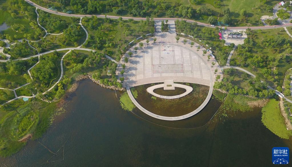 6月4日在山東省濟南市拍攝的華山濕地公園(無人機照片)。