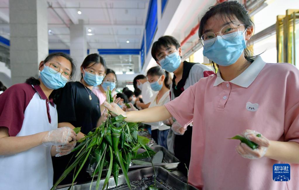 當日,湖北省恩施土家族苗族自治州宣恩縣第一高級中學組織高三學生參加傳統手工包粽子比賽,讓即將踏入考場的學生在親自動手體驗傳統文化的過程中舒緩心情、釋放壓力,以輕松的心態迎接高考。