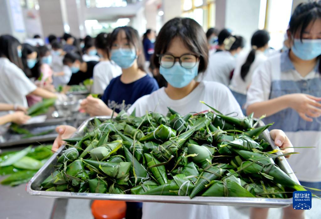 當日,湖北省恩施土家族苗族自治州宣恩縣第一高級中學組織高三學生參加傳統手工包粽子比賽,讓即將踏入考場的學生在親自動手體驗傳統文化的過程中舒緩心情、釋放壓力,以輕松的心態迎接高考。