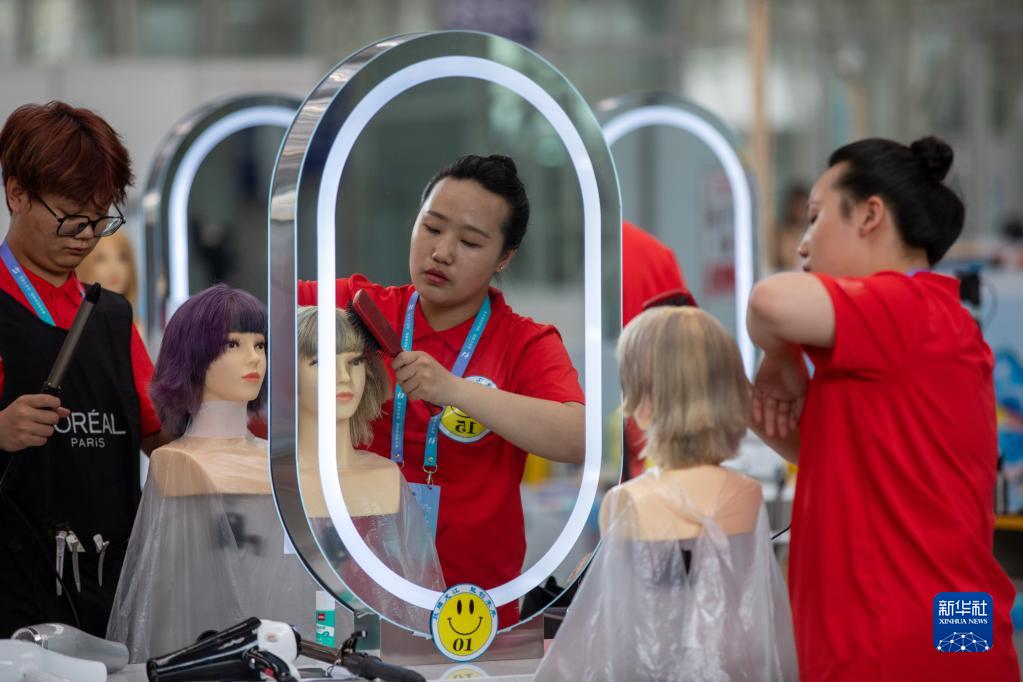 6月5日,選手在參加美發(fā)比賽。