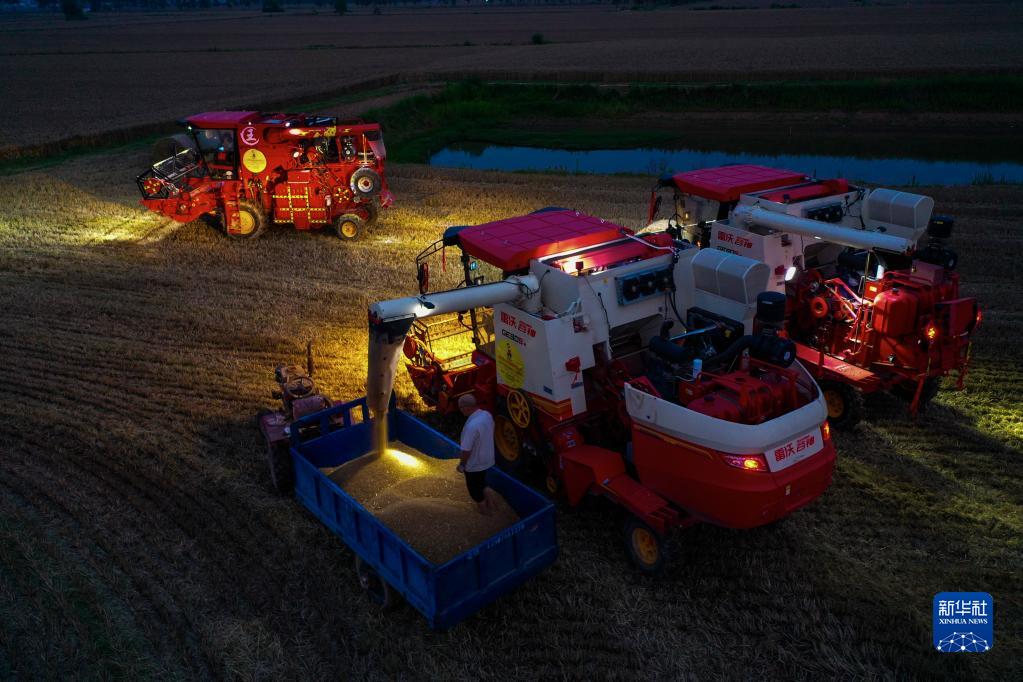 5月31日夜,河南省駐馬店市正陽縣付寨鄉(xiāng)章寨村村民在搶收小麥。
