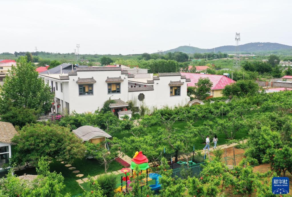 6月5日,游客在秦皇島市北戴河區費石莊村一家精品民宿的果園參觀(無人機照片)。