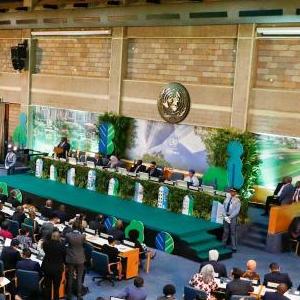 這是6月5日在肯尼亞首都內羅畢拍攝的第二屆聯合國人居大會開幕式會場。