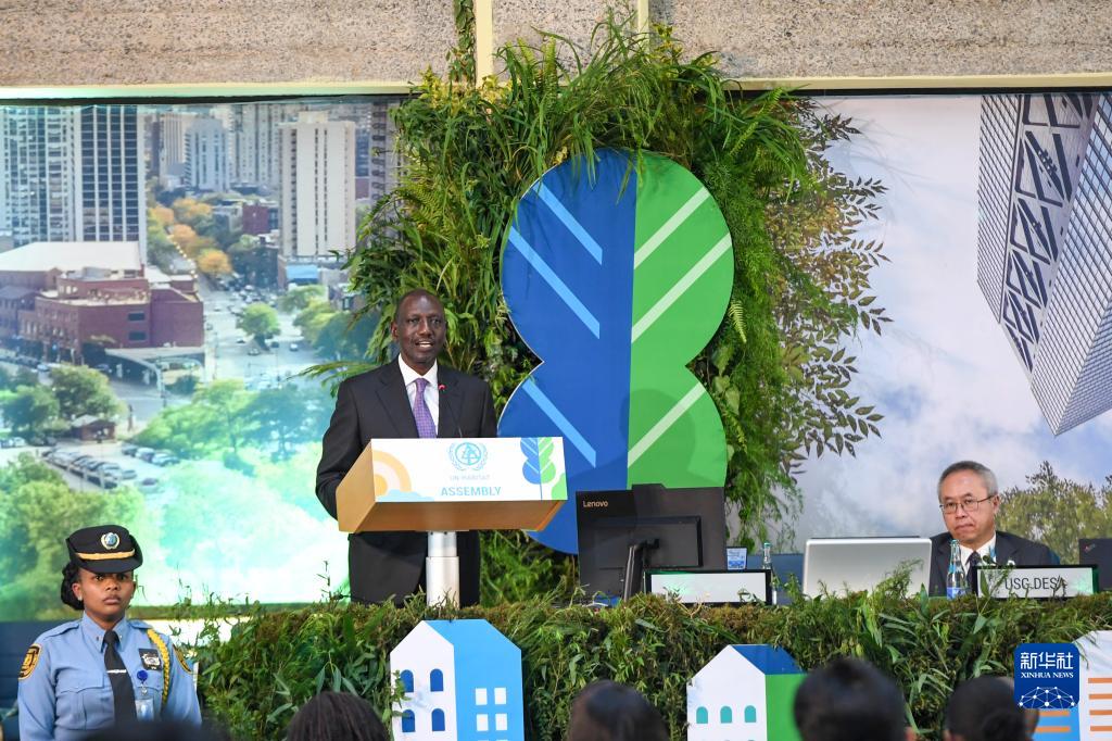 6月5日,肯尼亞總統魯托在首都內羅畢舉行的第二屆聯合國人居大會開幕式上講話。