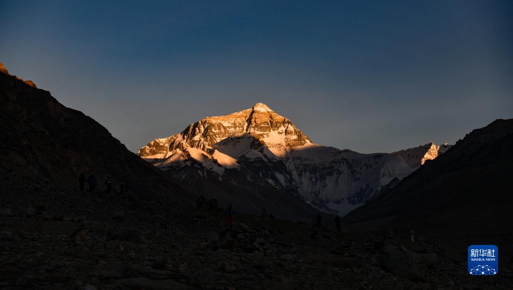 巍峨的珠穆朗瑪峰屹立于青藏高原,珠峰地區氣候復雜,景色瞬息萬變。“國道之行 從雪山奔向大海”報道組在落日時分來到珠穆朗瑪峰腳下,記錄下世界之巔的“日照金山”壯美場景。