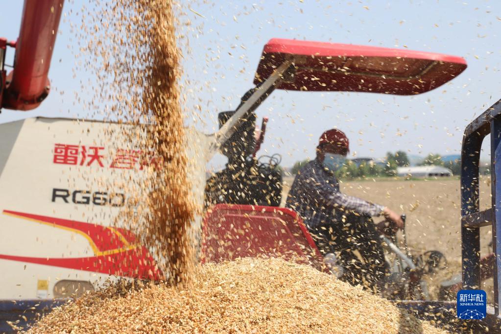 6月6日,農機手駕駛收割機在河南省焦作市武陟縣謝旗營鎮蒯村收獲小麥。