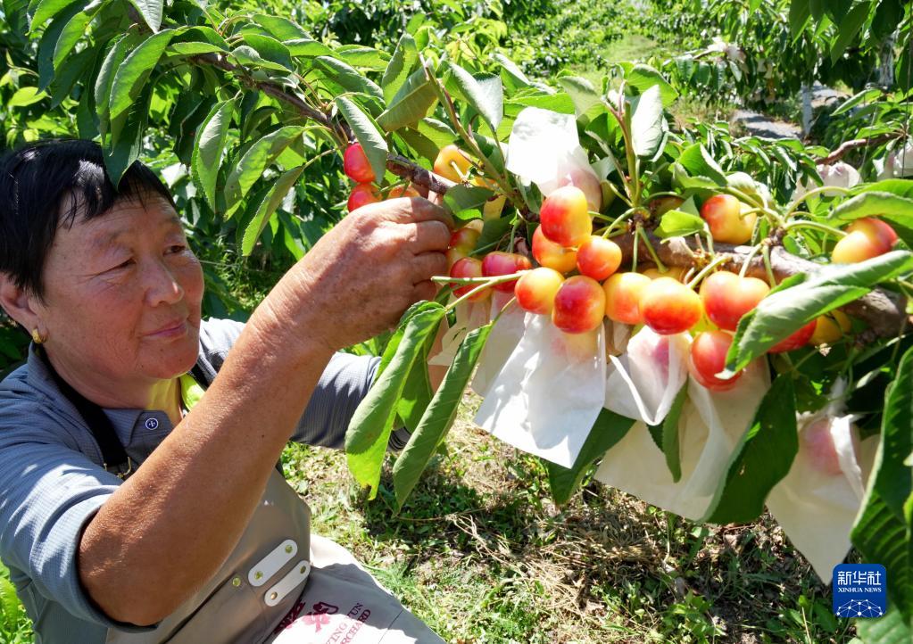 6月6日,秦皇島市山海關區石河鎮果農在管護套袋櫻桃。