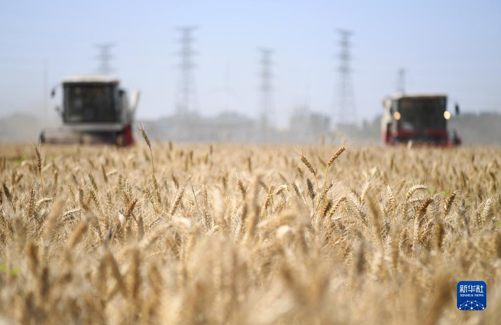 6月6日,在河南省安陽市滑縣萬古鎮,收割機在搶收種子田的小麥。
