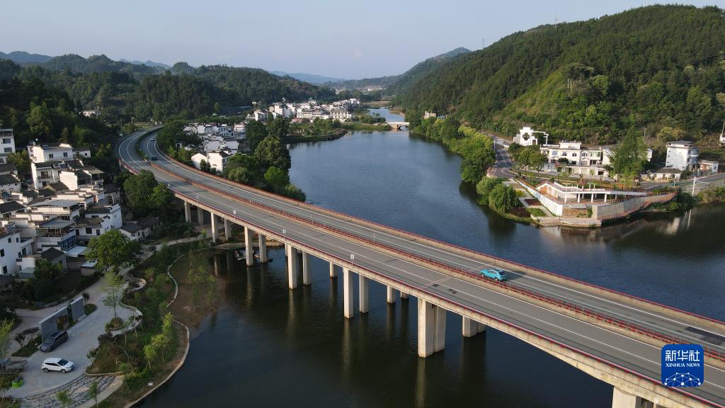 這是6月1日拍攝的安徽省黃山市歙縣新安江風景(無人機照片)。