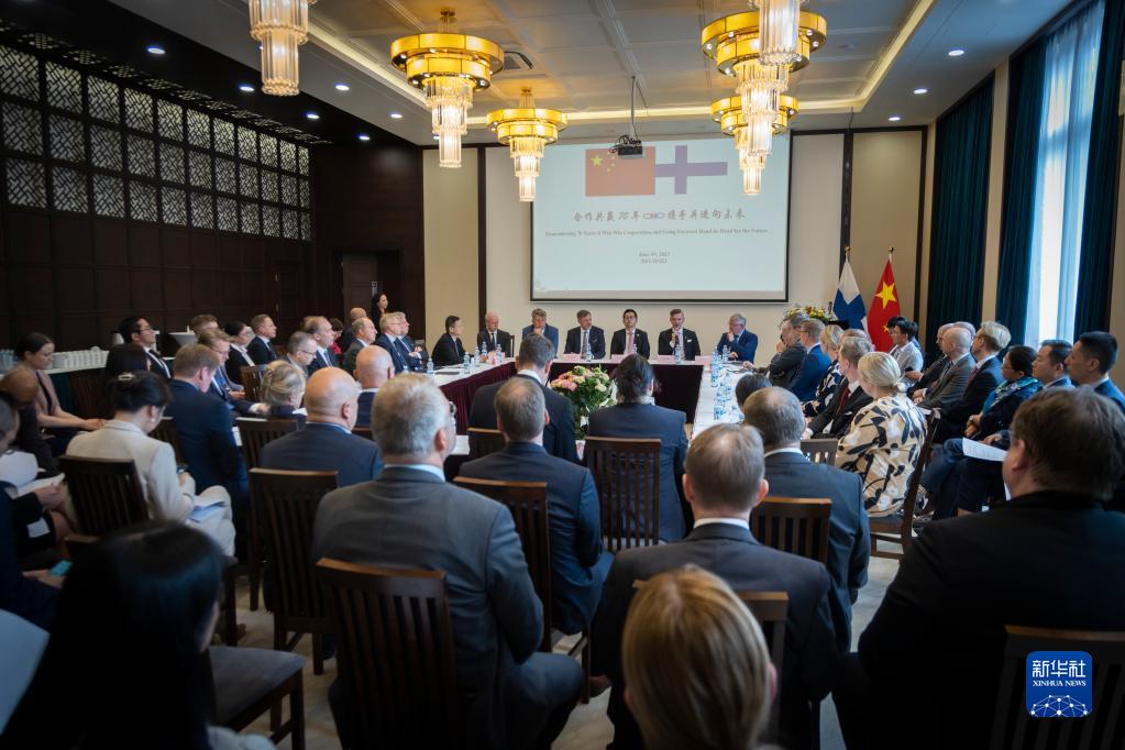 這是6月5日在芬蘭赫爾辛基拍攝的以“回顧中芬互利合作70年,攜手面向未來”為主題的研討與慶祝活動現場。