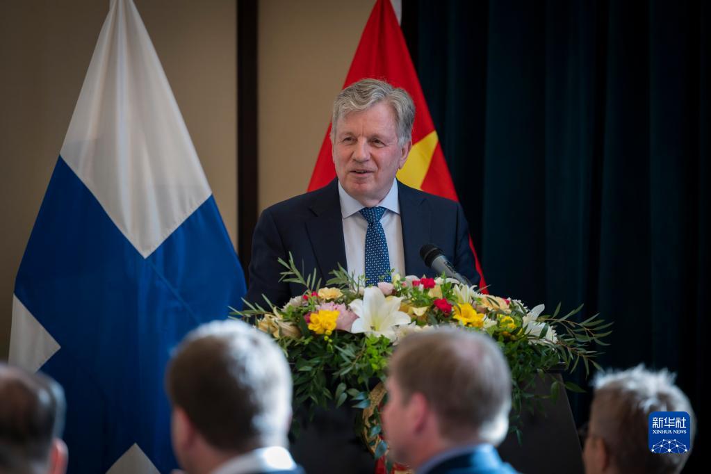 6月5日,芬蘭前總理埃斯科·阿霍在芬蘭赫爾辛基舉辦的以“回顧中芬互利合作70年,攜手面向未來”為主題的研討與慶祝活動現場發言。