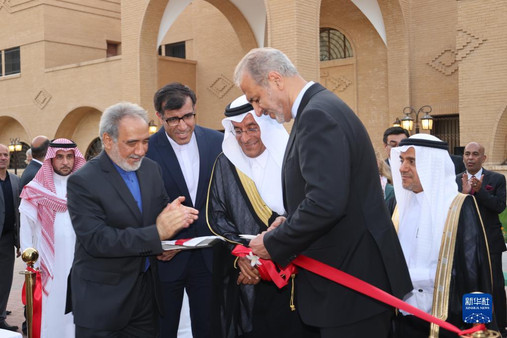 伊朗駐沙特阿拉伯大使館6日舉行重新開館儀式,伊朗副外長比格德利、沙特副外交大臣優素福等兩國官員出席。