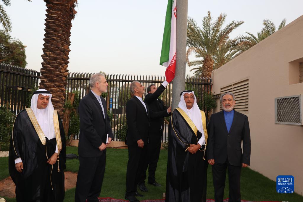 伊朗駐沙特阿拉伯大使館6日舉行重新開館儀式,伊朗副外長比格德利、沙特副外交大臣優素福等兩國官員出席。