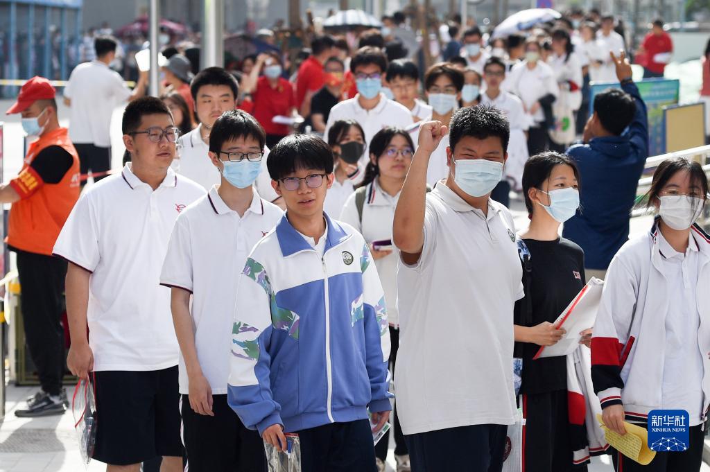 6月7日,在北京市陳經(jīng)綸中學(xué)考點(diǎn),考生在排隊(duì)進(jìn)入考點(diǎn)時(shí)向家長(zhǎng)和老師致意。