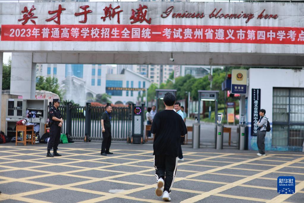 6月7日,在貴州省遵義市遵義四中考點外,一名考生跑步進入考場。