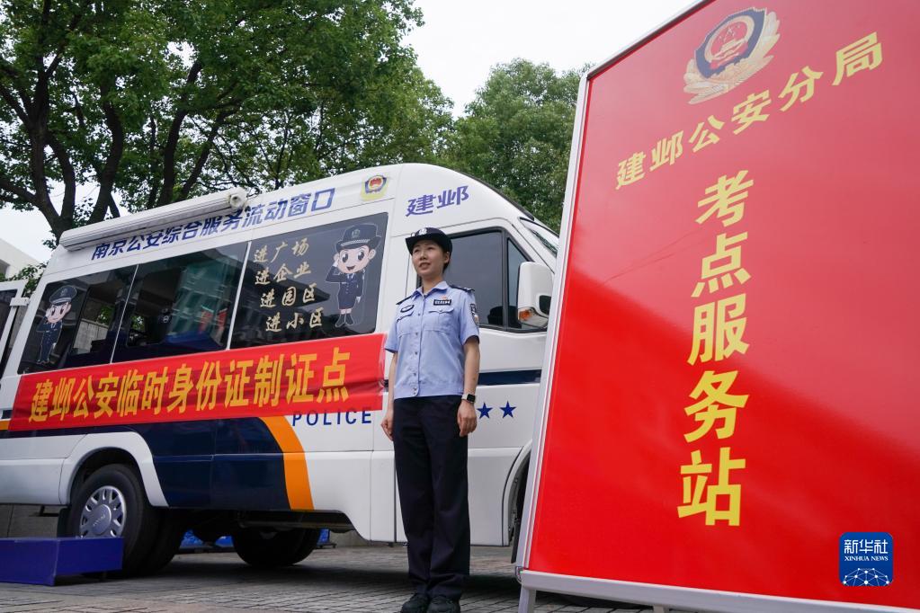 6月7日,南京市公安局建鄴分局在南京中華中學考點設置考點服務站,服務考生和家長。