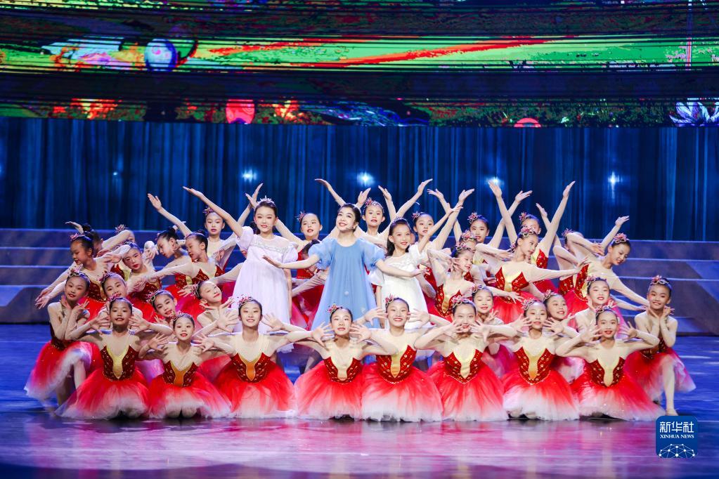 6月6日,在“新歌唱新疆”優(yōu)秀原創(chuàng)歌曲演唱會上,小朋友們在表演歌舞《向快樂出發(fā)》。