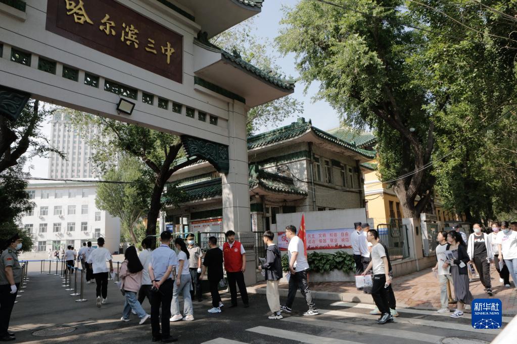 6月7日,在哈爾濱市第三中學(xué)考點(diǎn),考生們有序進(jìn)入考場(chǎng)。