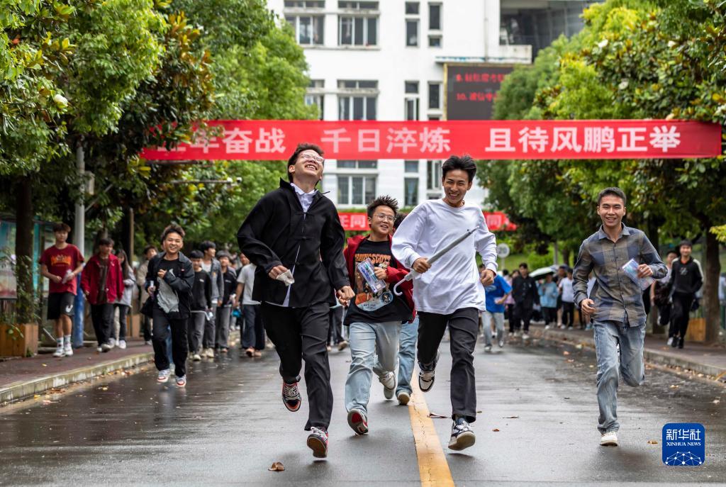6月8日,在貴州黔西一中考點,考生完成最后一科考試后沖出考點。