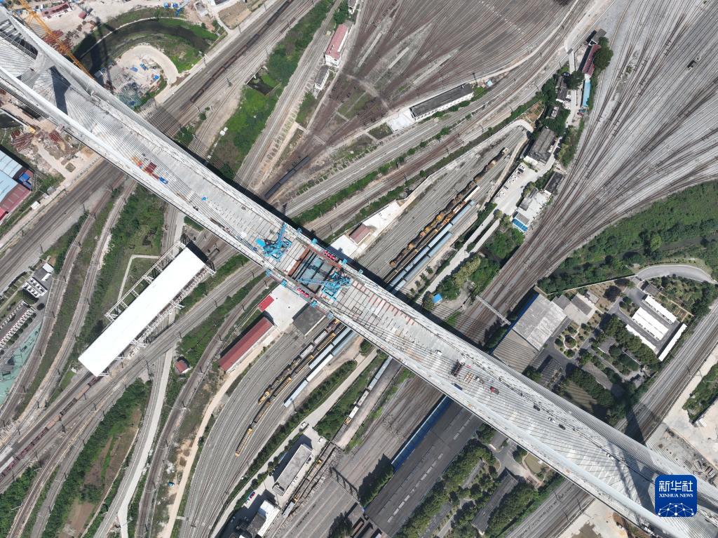 這是合龍后的襄陽北編組站大橋(6月8日攝,無人機照片)。