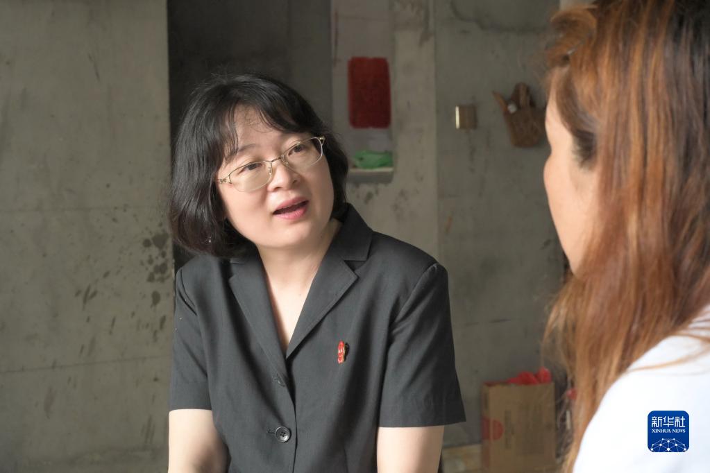 6月8日,“茉莉姐姐”服務(wù)團隊成員、福州市中級人民法院少年庭法官林菁菁在一位未成年當(dāng)事人家中向其母親了解情況。