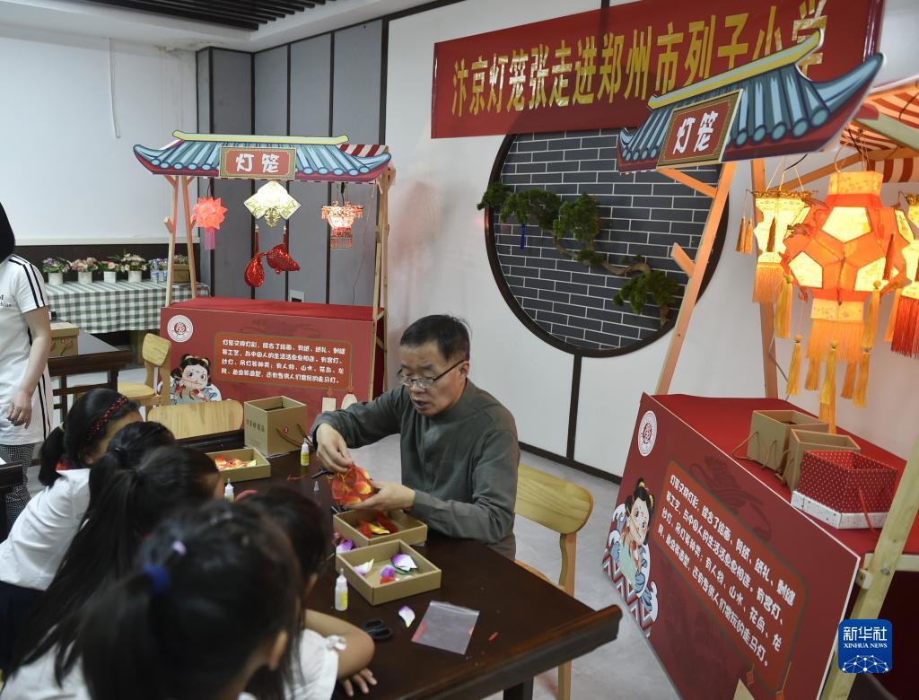 6月8日,學(xué)生們?cè)诨顒?dòng)現(xiàn)場(chǎng)觀看非遺項(xiàng)目“汴京燈籠張”的彩燈制作技藝。