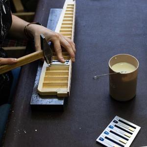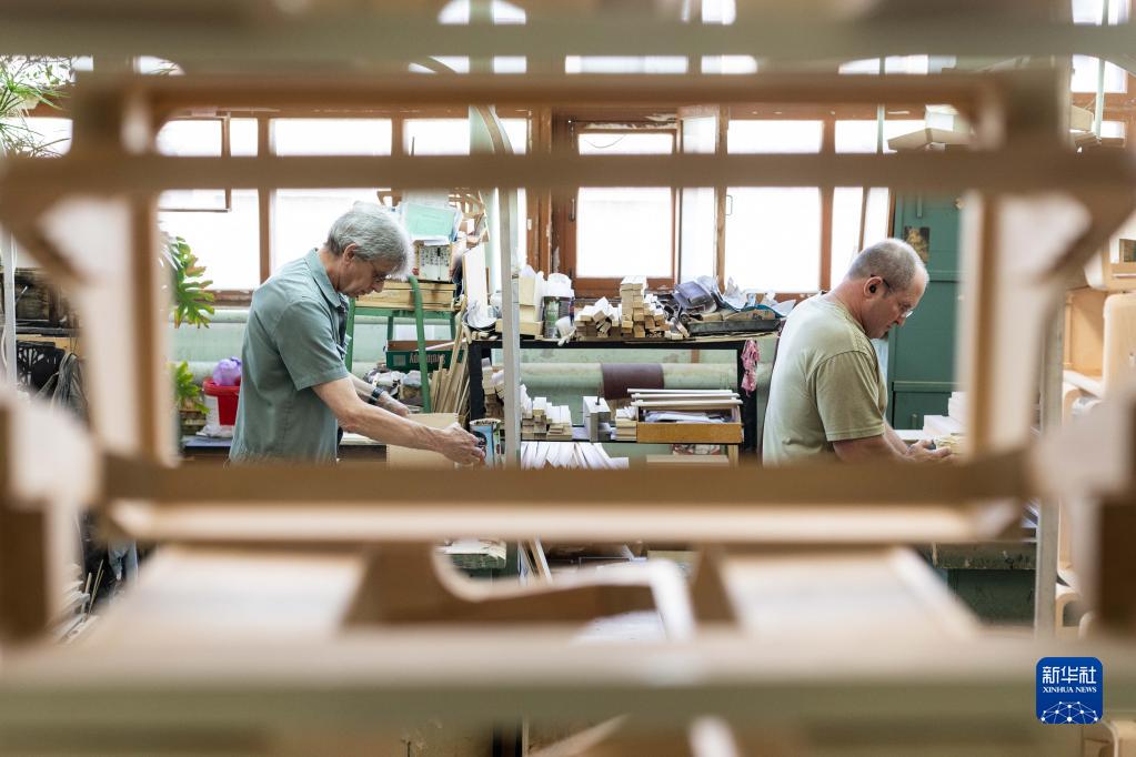 6月7日,工作人員在俄羅斯圖拉加工手風琴琴身。