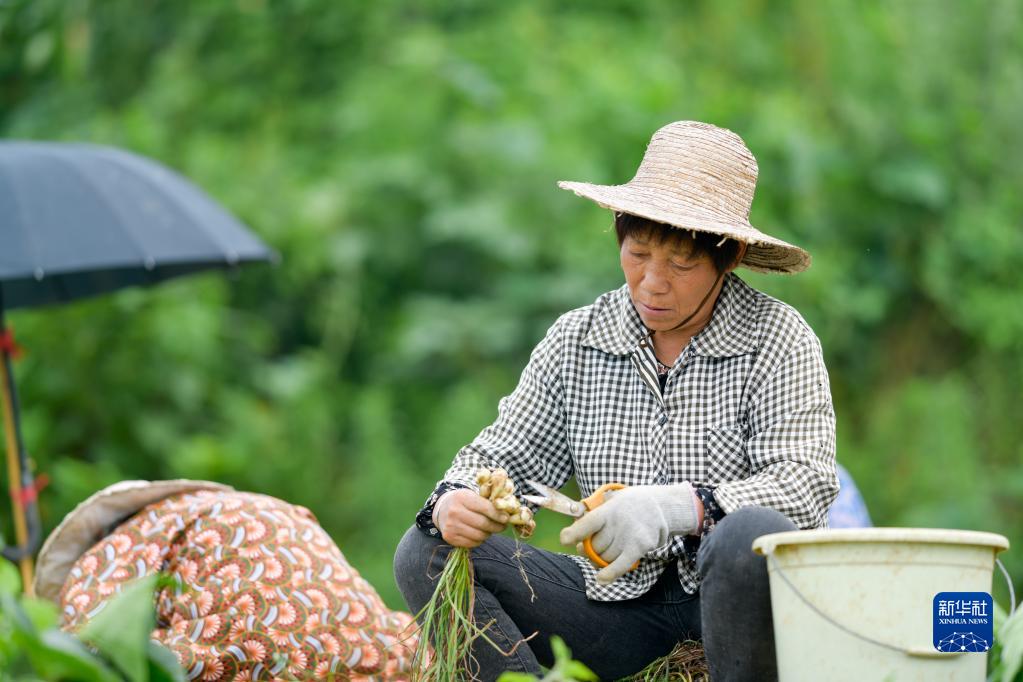 6月8日,在豐都縣虎威鎮大池社區的藠頭田,當地村民在種植大戶的組織下集體采收藠頭。