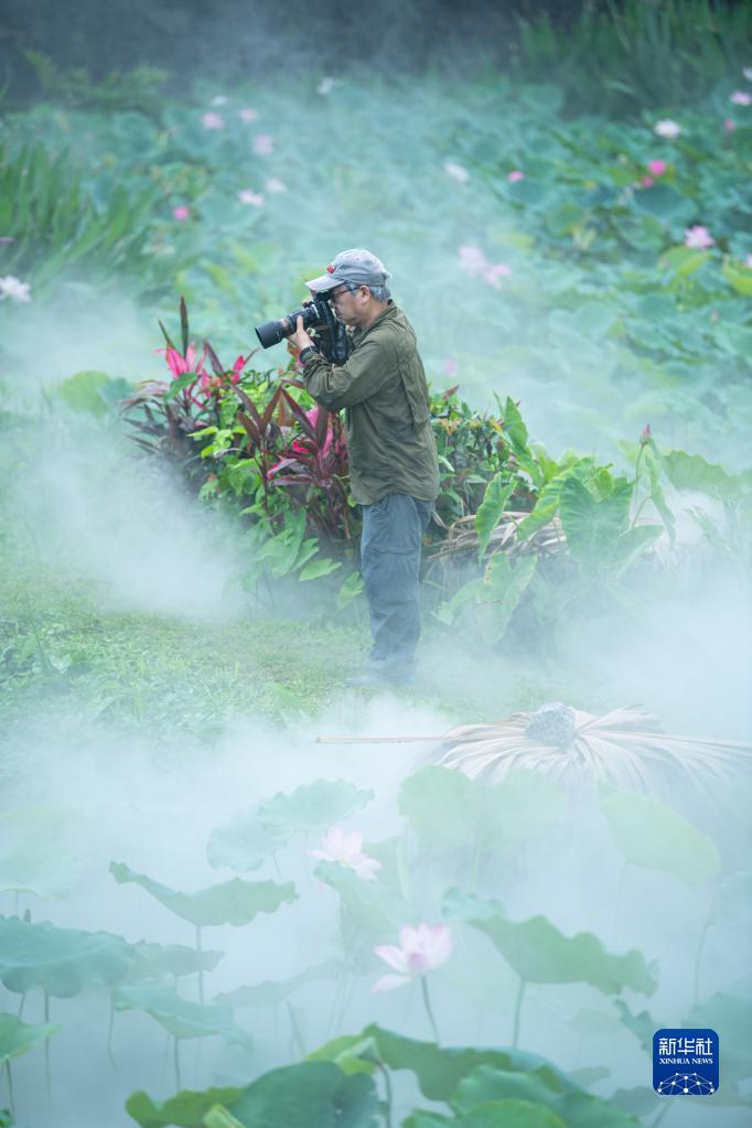 6月9日,游人在澳門龍環葡韻拍攝荷花。